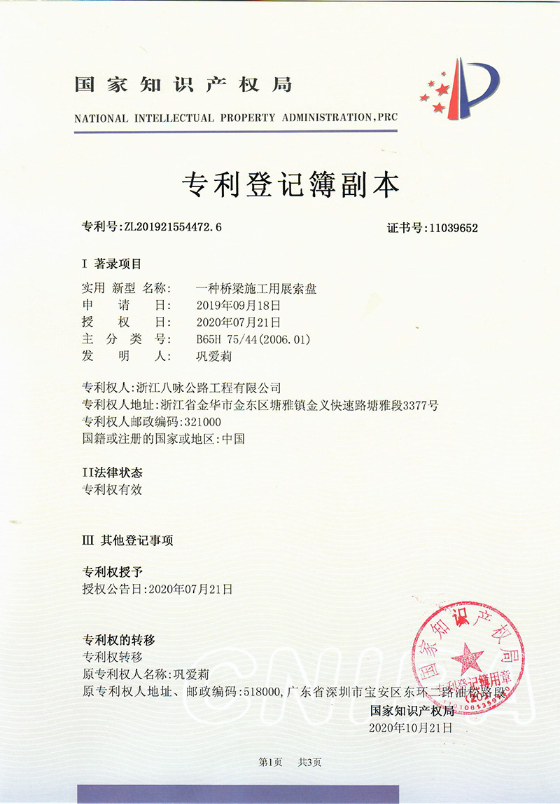 便捷式高速公路微型修补设备-实用新型专利证书(签章)