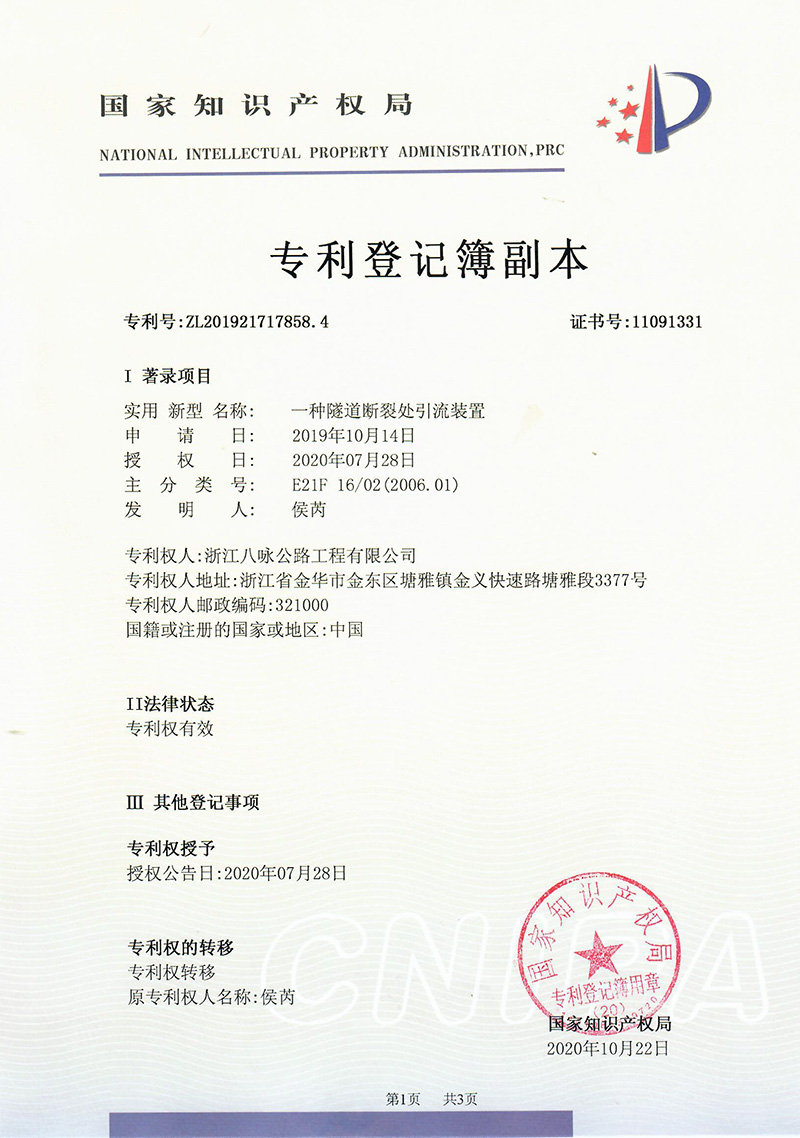 便捷式高速公路微型修补设备-实用新型专利证书(签章)