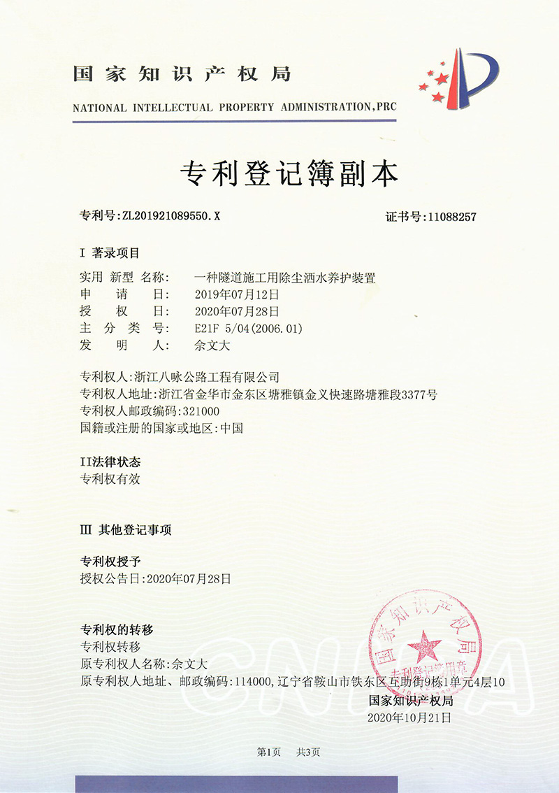 便捷式高速公路微型修补设备-实用新型专利证书(签章)