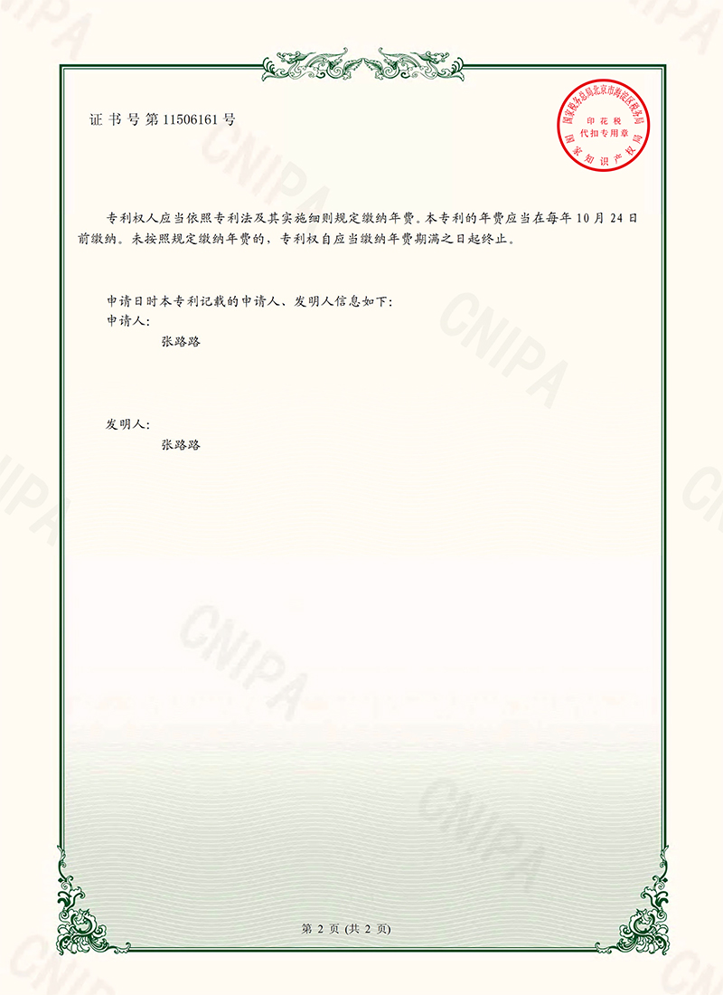 便捷式高速公路微型修补设备-实用新型专利证书(签章)