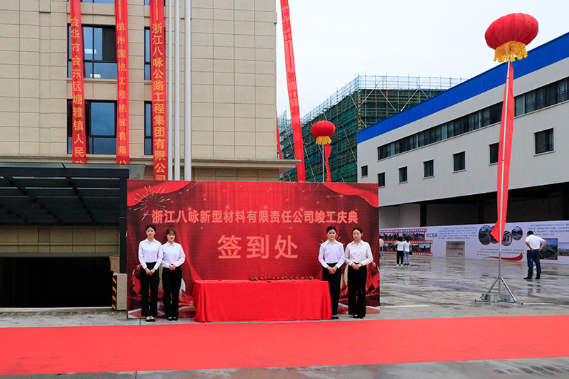 浙江八咏新型材料有限责任公司年产40万吨环保型温拌沥青项目,为金东区重点工程,占地28.05亩,建筑面积23000平方米,按全封闭环保型绿色场站高标准建造。项目总投资1.2亿元,建成后实现年产40万吨环保型温拌沥青混合料的生产销售,年产值约2亿元。2020年4月1日项目开工建设(施工许可证),2021年1月建成投产,并通过相关部门竣工验收。