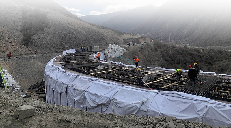 从2021年12月25日下午13点开始浇筑,至晚上23:20顺利浇筑完成。由于项目地处川西高原且又恰逢冬季所以昼夜温差较大,为了能更好的保证质量我项目部采取密闭覆盖蒸汽保温养护的方法,保证了施工质量,孔龙3# 桥的顺利浇筑标志着我项目全线桥梁从下部结构向上部结构施工的工序转换,为顺利完工奠定了良好的基础。