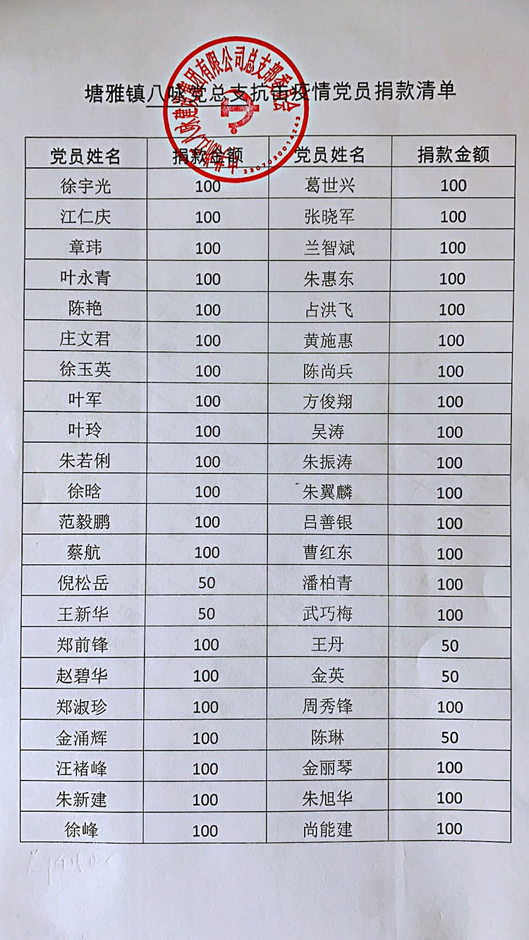图为八咏党员抗疫捐款名单