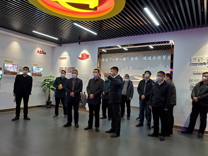 凋研结束后,李书记在八咏集团董事长和八咏施工技术公司总经理等人的陪同下,参观了塘雅基地新落成并投入使用的“党建教育中心”。董事长徐宇光讲解了“党建教育中心”成立的目的和发挥的作用:一是回顾党的历史、企业发展的历程,突显中国共产党人信仰的力量,充分体现中国特色社会主义的道路自信、理论自信、制度自信、文化自信;二是总结八咏集团在企业发展过程中的业绩成果,全面展示党员在这个过程中发挥的模范带头作用;三是作为员工培训、人才队伍培养的教育基地,为企业储备人才。